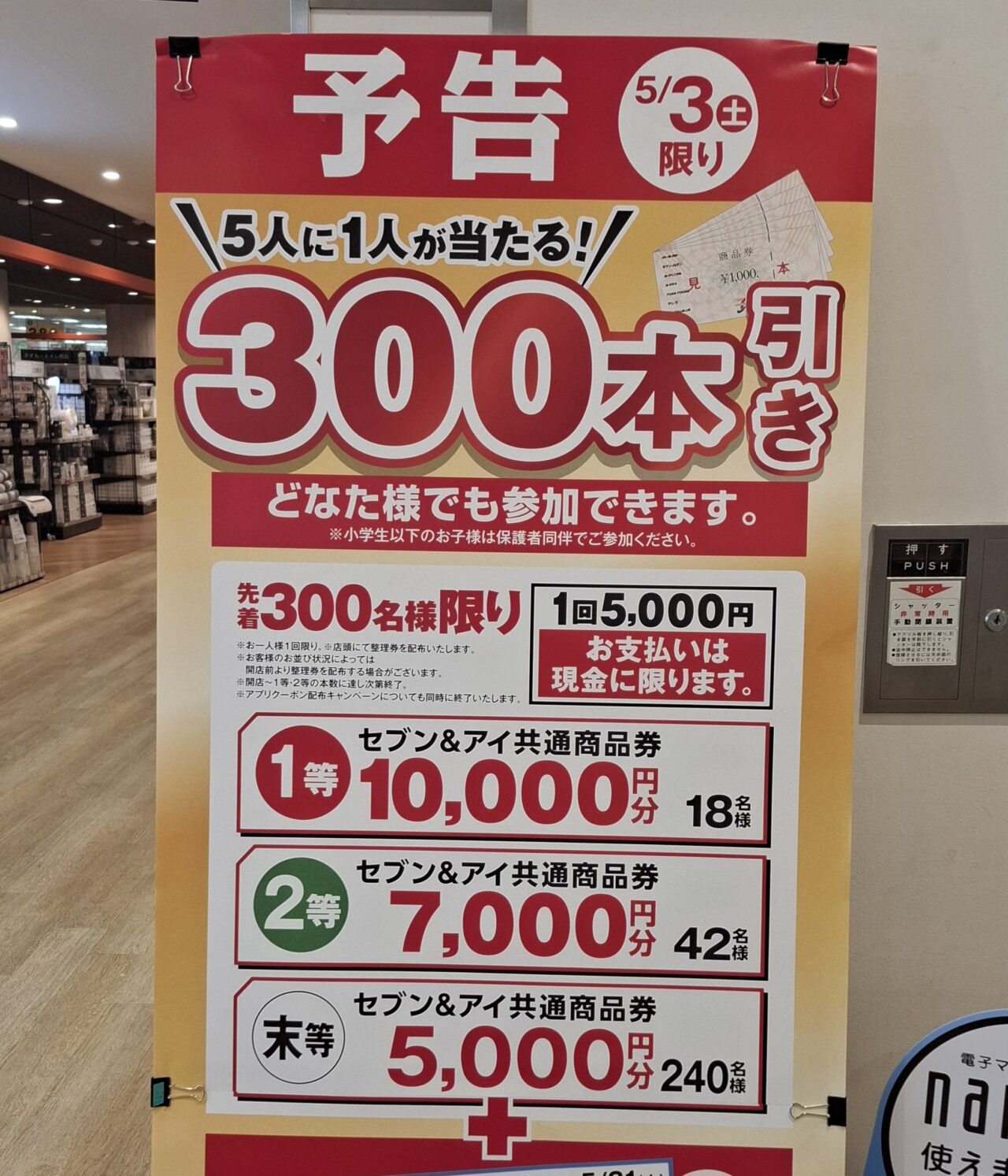 【我孫子市】5/3は、イトーヨーカドーの300本引きに挑戦して、一等10,000円分の商品券を当てちゃおう!