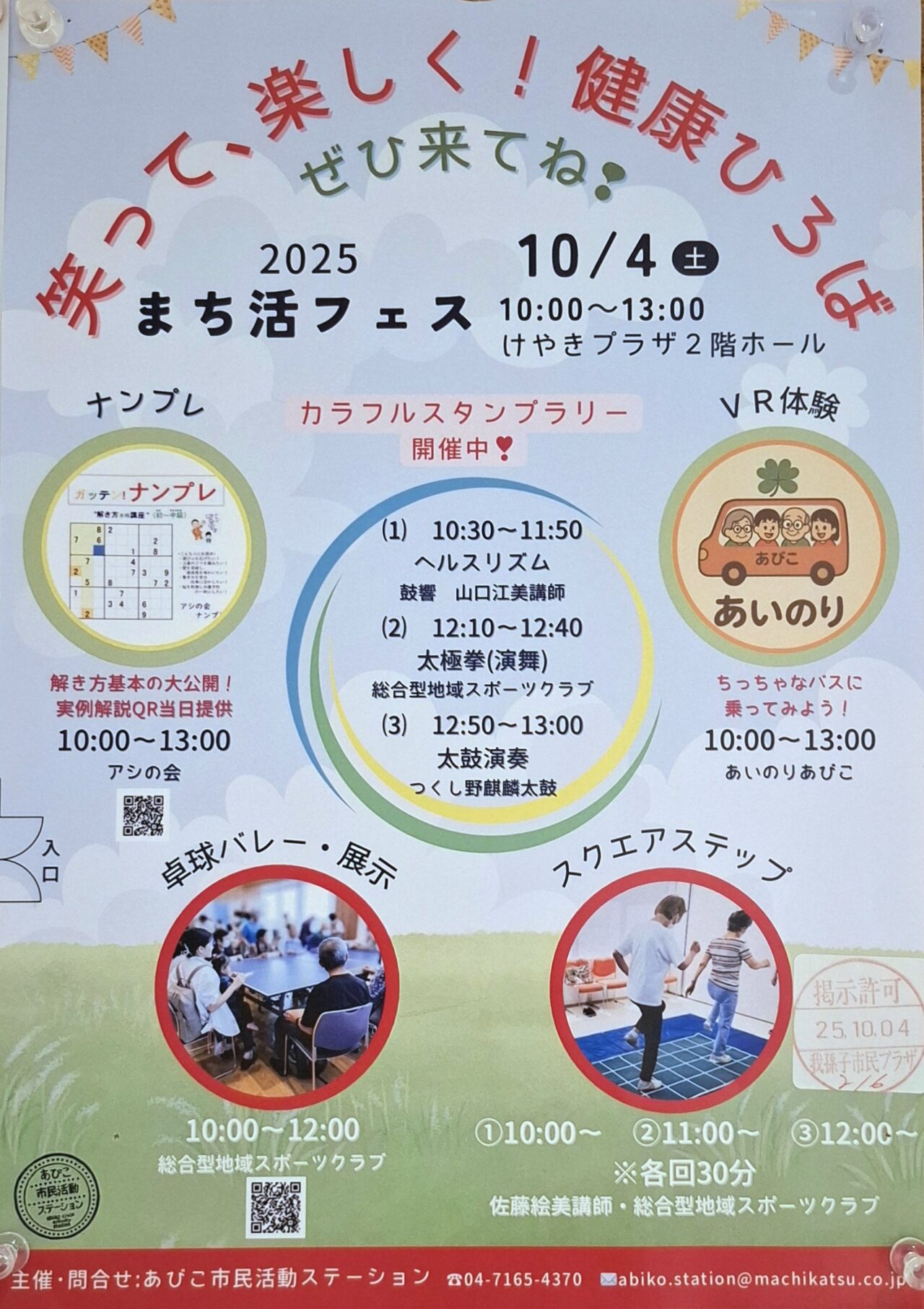 おじいちゃん・おばあちゃんからお孫さんまで、幅広い年齢層の方が1日楽しめる充実した内容となっています。我孫子の良さを発見しに、そしてより暮らしやすい我孫子を目指すために、ぜひ皆さんでお出かけくださいね。