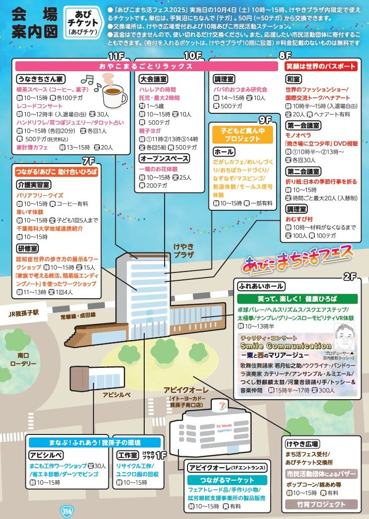 ※有料のプログラムがあります。けやきプラザ内の有料プログラムには「あびチケット」が必要です(当日けやきプラザ前広場で購入可)