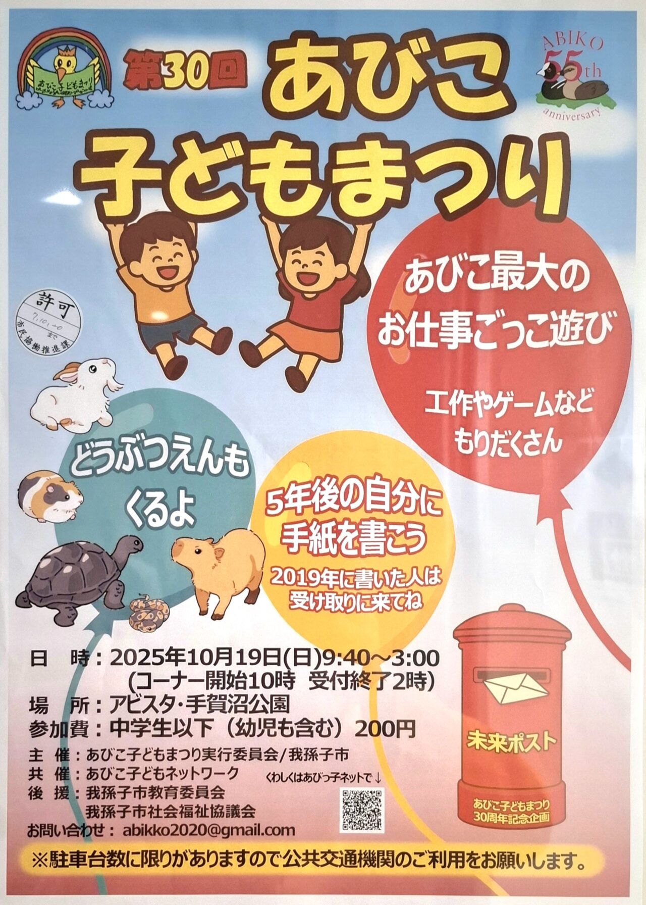 今度の週末は、我孫子最大のお仕事ごっこ遊び「あびこ子どもまつり」が開催されます。