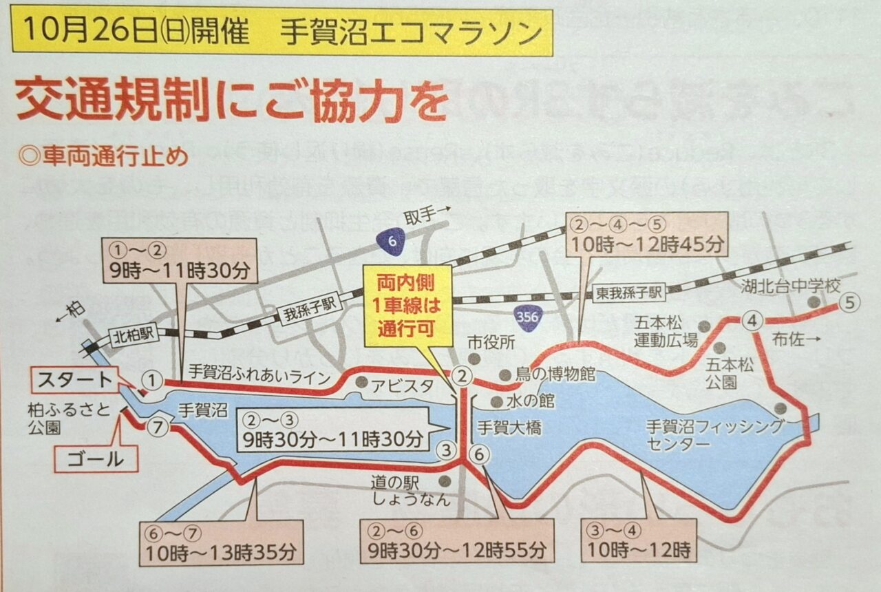 【我孫子市】10/26は「手賀沼エコマラソン」。交通規制にご注意ください
