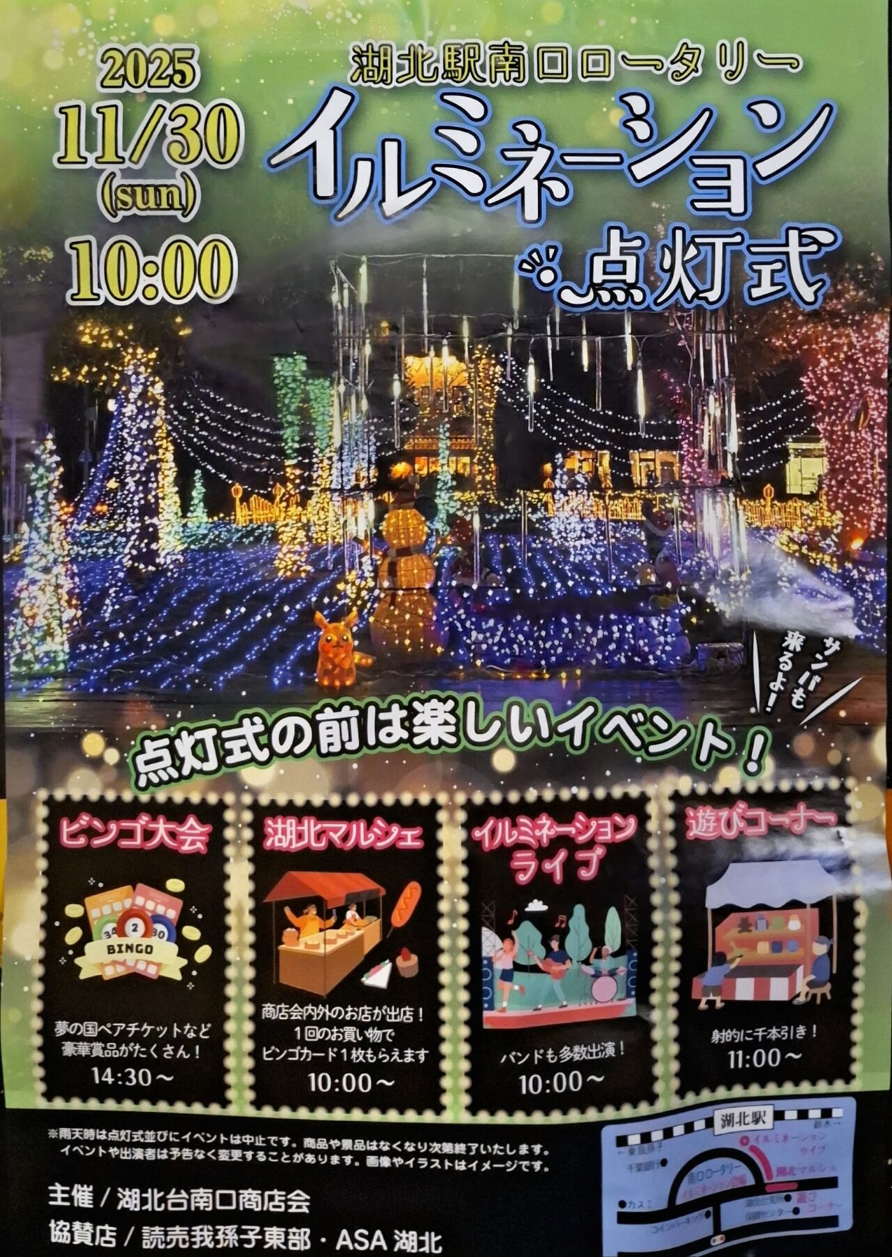 【我孫子市】湖北の冬の風物詩。いよいよ駅前のイルミネーションが点灯されます。11/30の点灯式は、楽しいイベントが盛りだくさん!