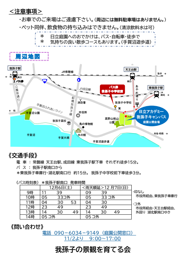 大久保様より、12月6日(土)に開催される日立アカデミー我孫子キャンパスの庭園公開の情報をいただいたので紹介します。