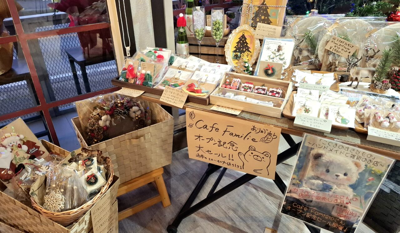 それから店内ではハンドメイド作家さんの作品も販売されていて、この時期なのでクリスマスグッズが沢山並んでいました。それも、とってもリーズナブルなお値段なんです。ぜひこちらのコーナーも覗いてみてくださいね。