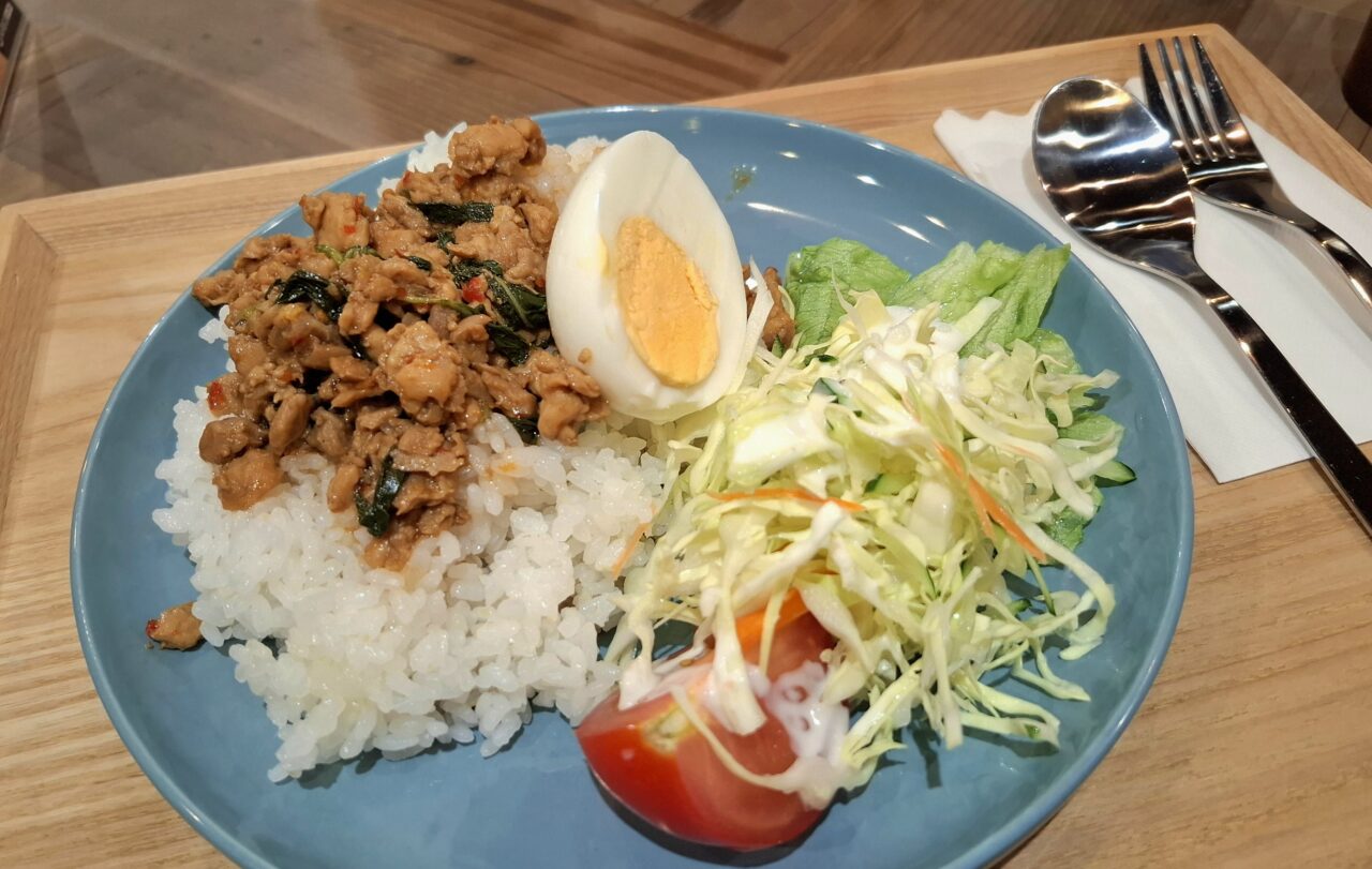 今回はおにぎりセットの他に、辛口ガパオライスも注文してみました。