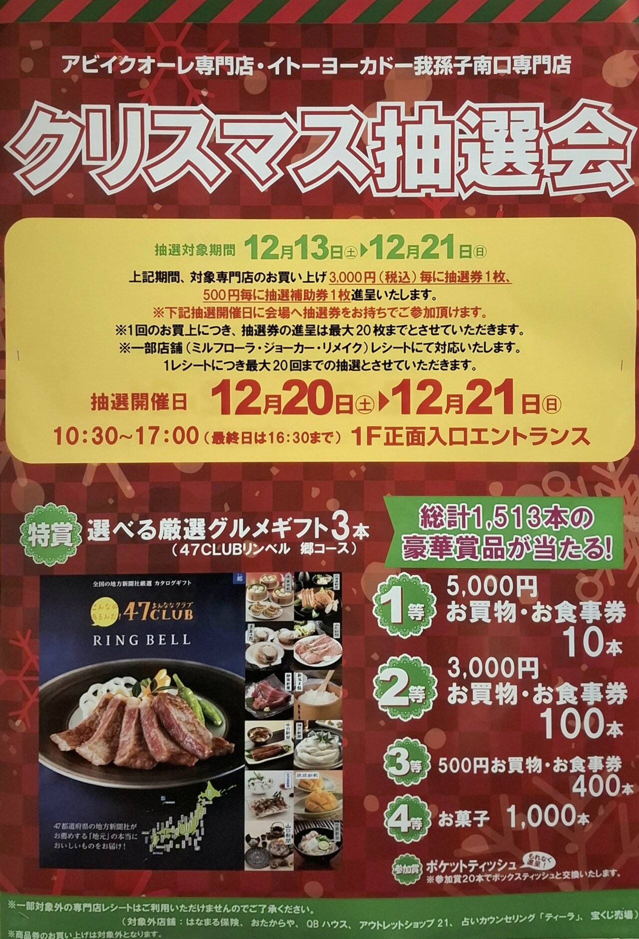 今年もアビイクオーレで、クリスマス抽選会を開催します。