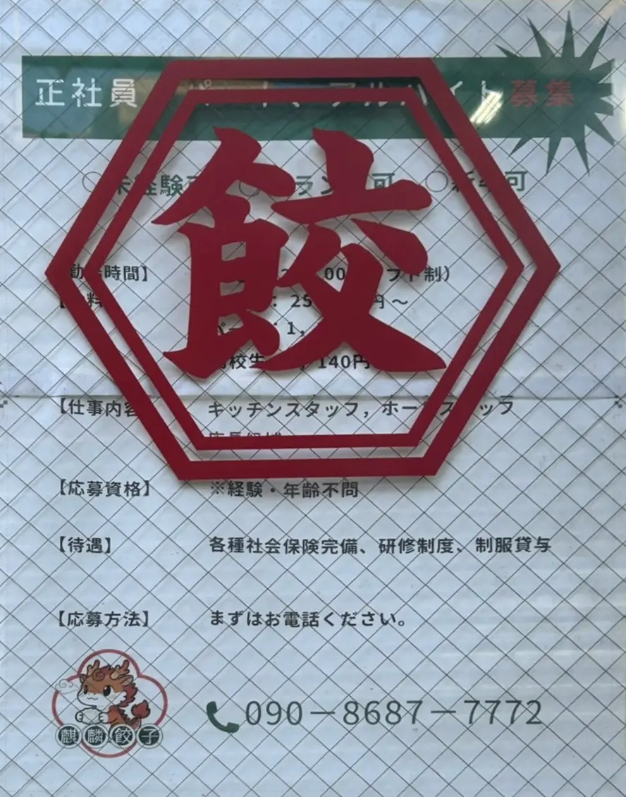 文字が隠れてしまっていますが、正社員、パート、アルバイトの募集ポスターも貼られていましたよ。興味のある方は、ぜひ問い合わせてみてくださいね。