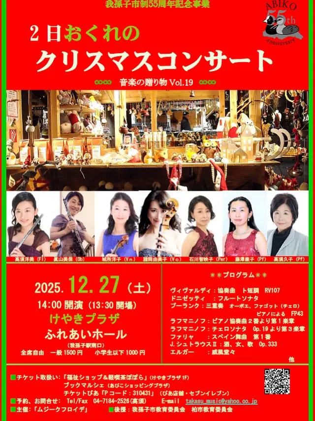 【我孫子市】クリスマスは終わってしまうけど、まだクリスマスコンサートは楽しめます。今年は、「2日おくれのクリスマスコンサート」ですよ