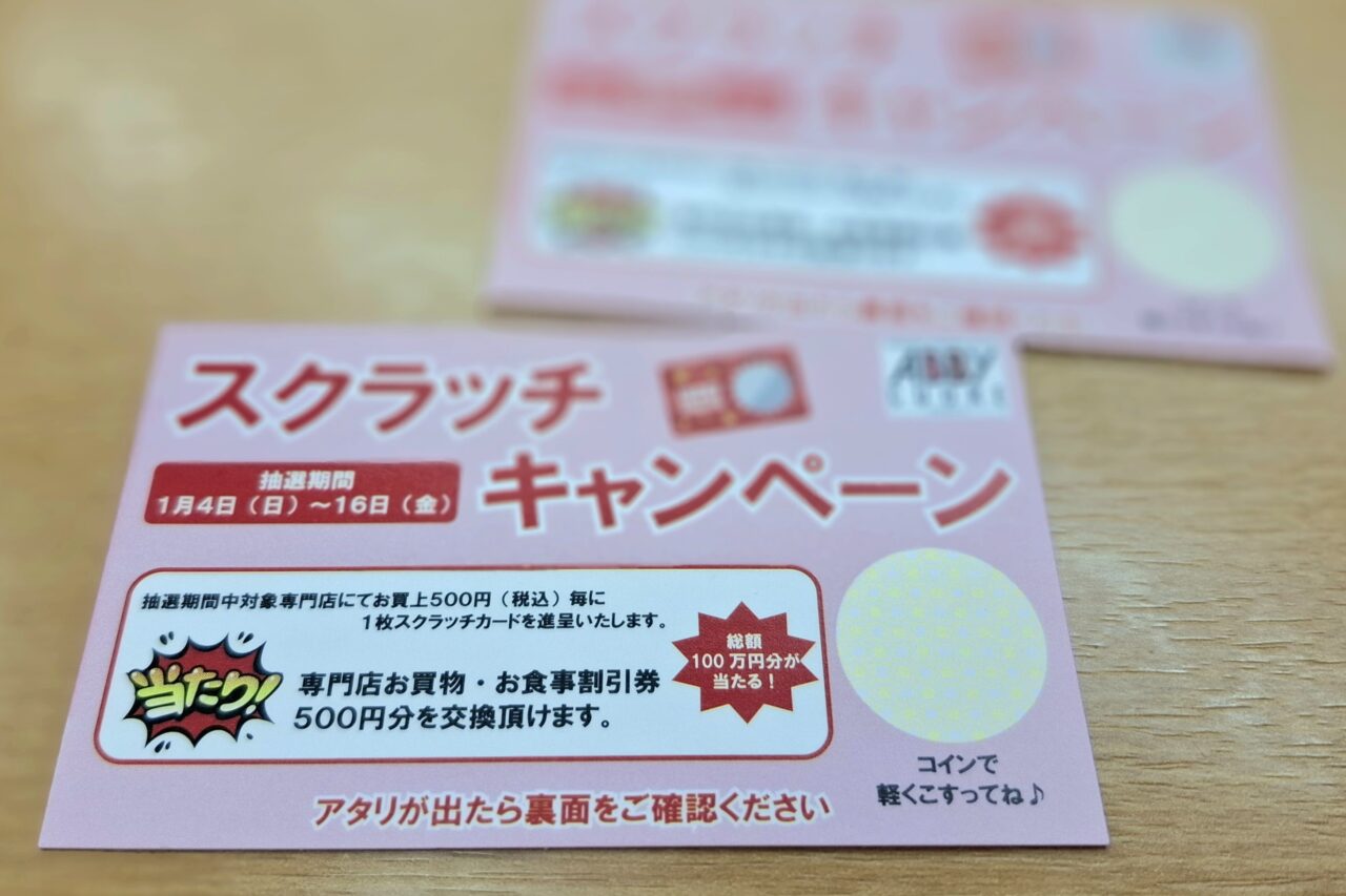 アビイクオーレで、「スクラッチキャンペーン」を実施していたので紹介します。