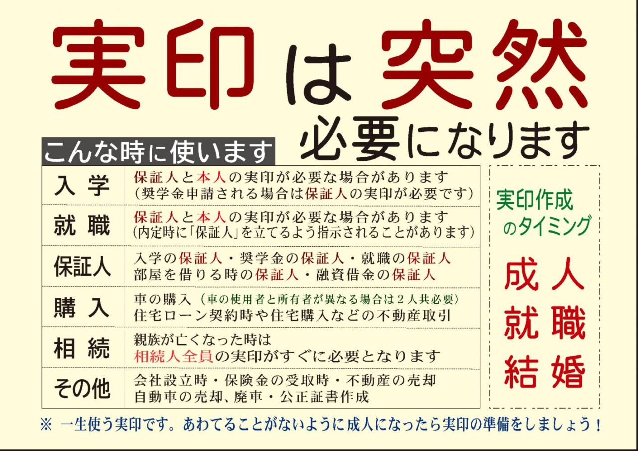 【我孫子市本町】「実印」&「黒の礼服・喪服」は 成人になったら準備しましょう【はんこ屋さん21 我孫子店】