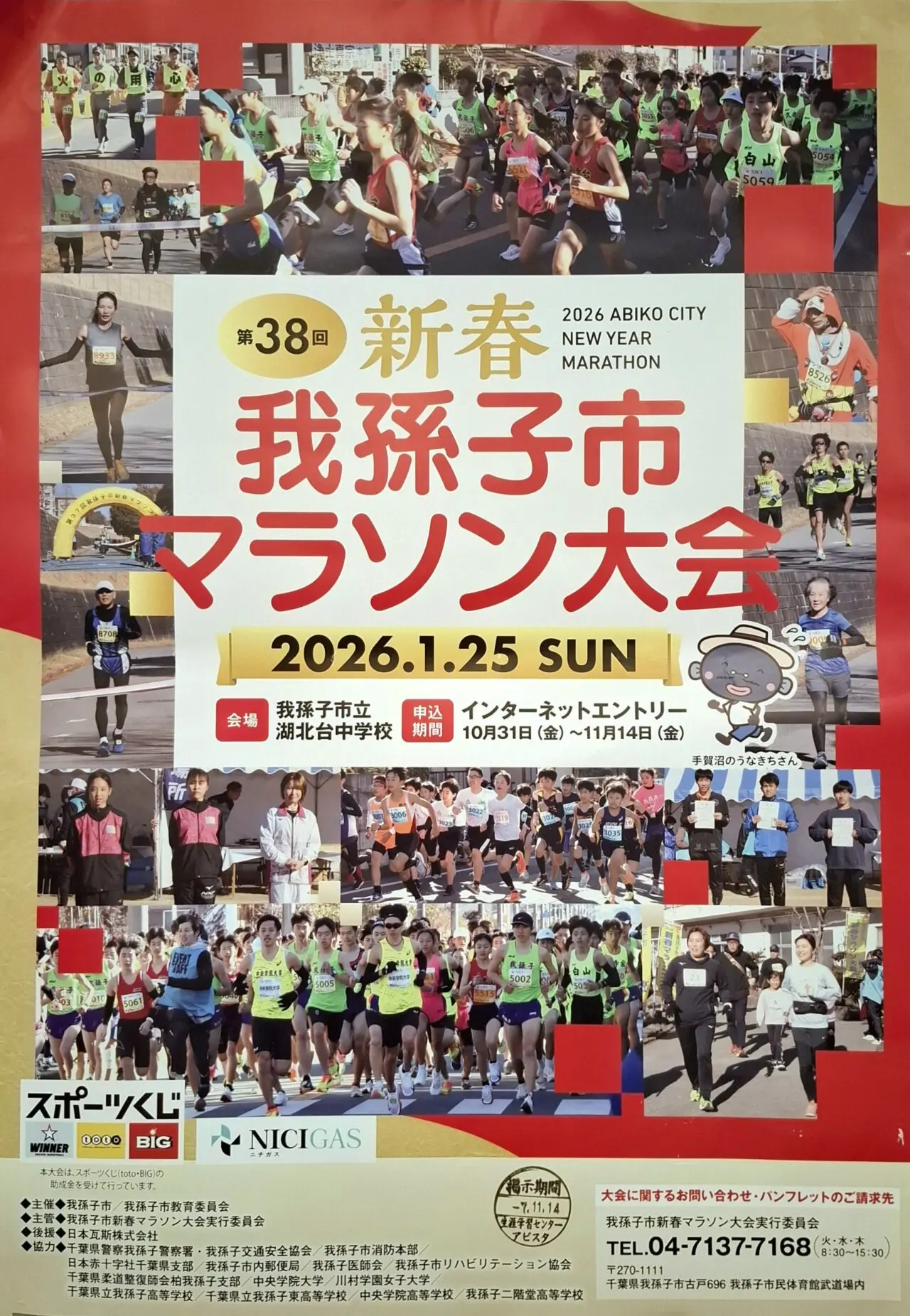 2026年1月25日 (日) に、我孫子市立湖北台中学校を会場とする「第38回 我孫子市新春マラソン大会」が開催されます。