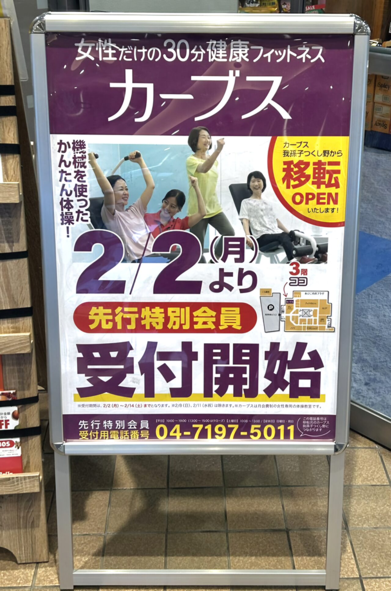 そしてオープンするカーブスは、2023年8月にオープンした我孫子つくし野店が、あびこショッピングプラザ内に移転してくるようです。