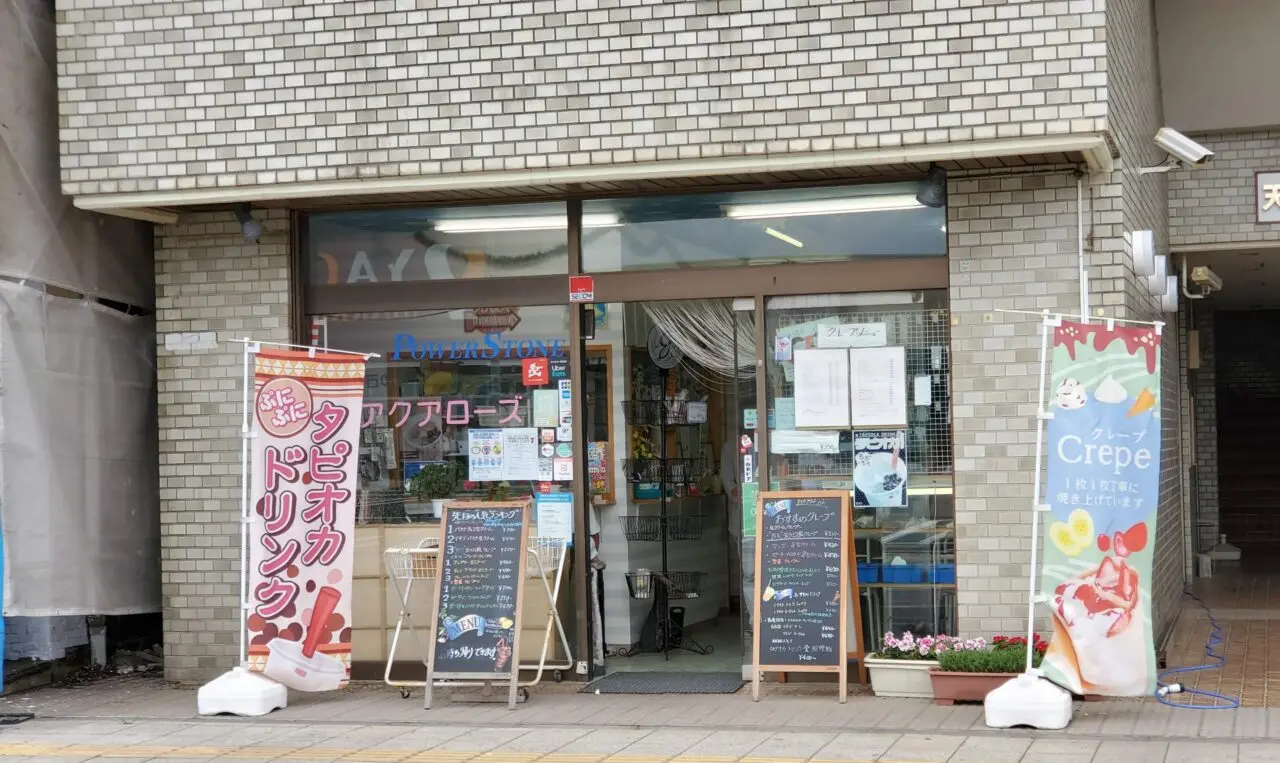 天王台南口駅前通り、クレープと石のお店だったアクアローズさん。