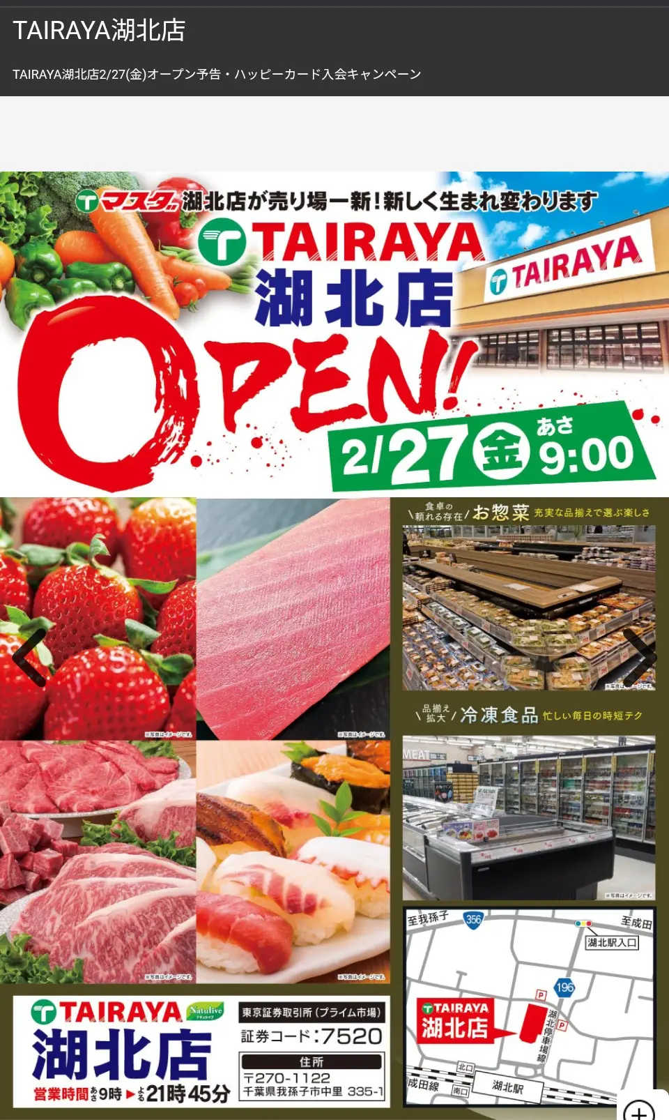 【我孫子市】待ってました!マスダ湖北店が「TAIRAYA湖北店」として生まれ変わり、2月27日にオープンするそうです