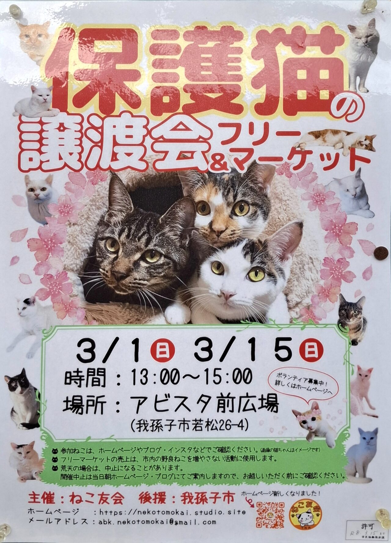 保護猫の譲渡会&フリーマーケットのお知らせです。