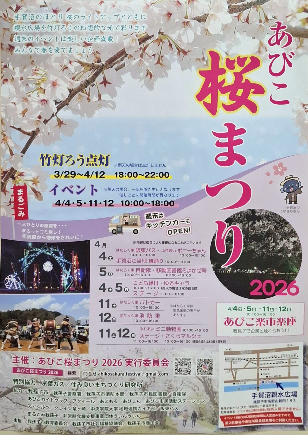 【我孫子市】手賀沼が桜と光に包まれる!「あびこ桜まつり2026」が開催決定。竹灯ろうの点灯やキッチンカーも!
