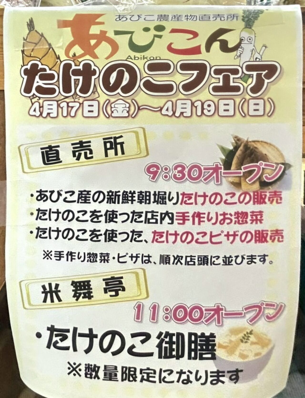 あびこん「たけのこフェア」